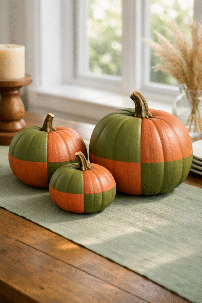 Color-Blocked Olive and Muted Terracotta Pumpkins