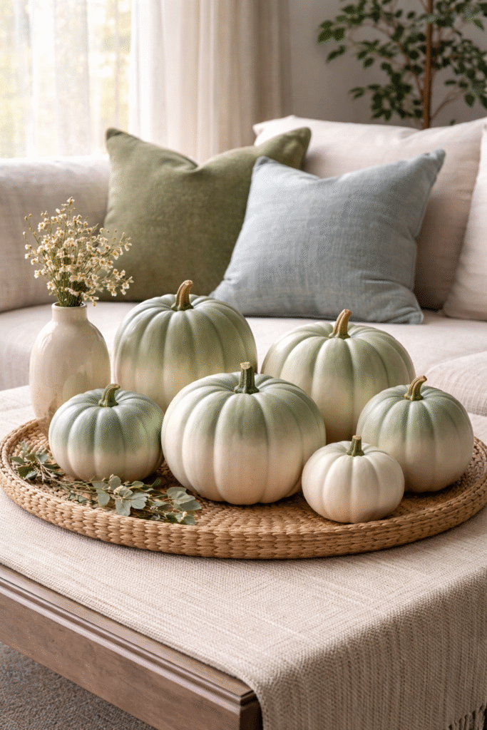 Soft Sage and Cream Ombre Pumpkins