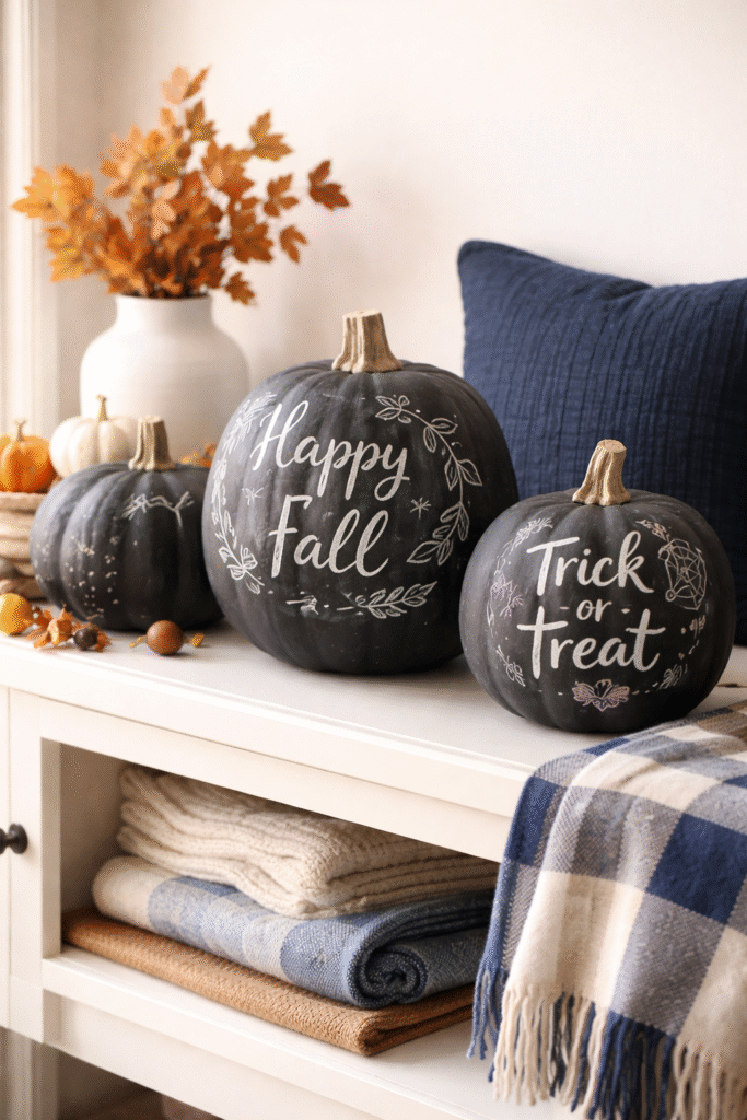 Chalkboard pumpkins allow flexibility and creativity. They’re interactive and easy to refresh.