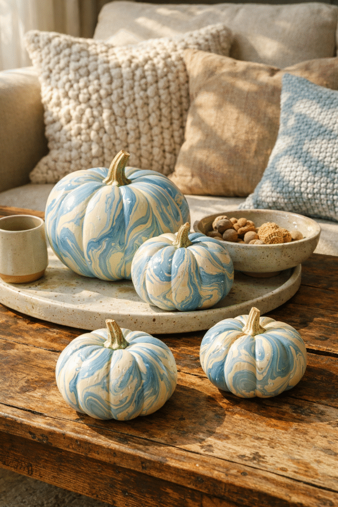 Marble-Effect Pumpkins in Soft Blue and Cream