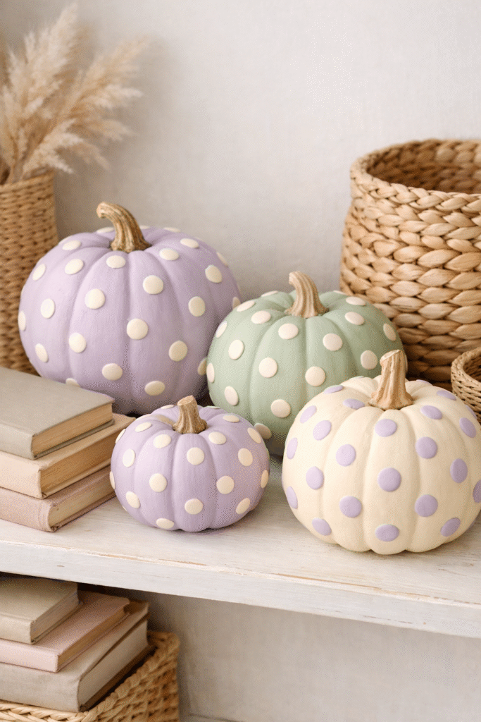 Paint pumpkins in coordinated pastel shades and group them in odd numbers for balance.