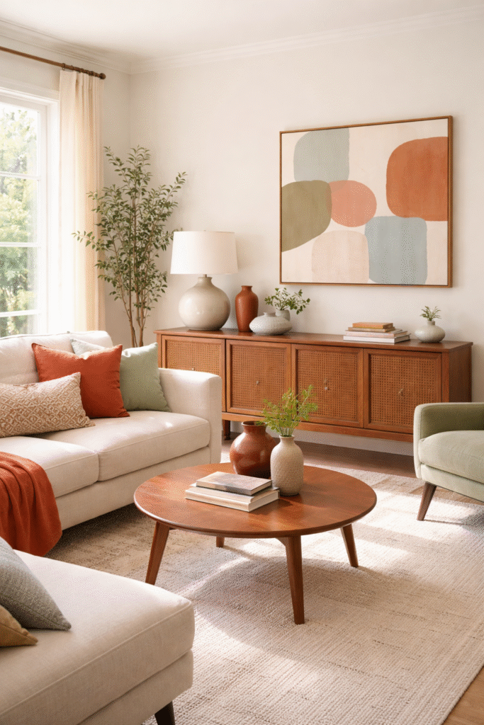 Below are mid century living room 8 design ideas that boost home value while still feeling warm, livable, and realistic. These ideas blend cozy interior inspiration with smart styling choices that feel Pinterest-worthy, modern, and practical — not showroom-stiff or overly brown.