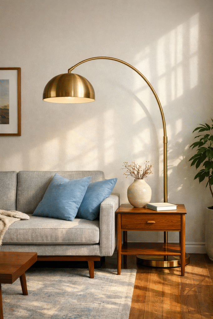 Lighting is one of the most overlooked value-boosting elements. A sculptural floor lamp or brass sputnik-style chandelier instantly makes the room feel intentional and updated.