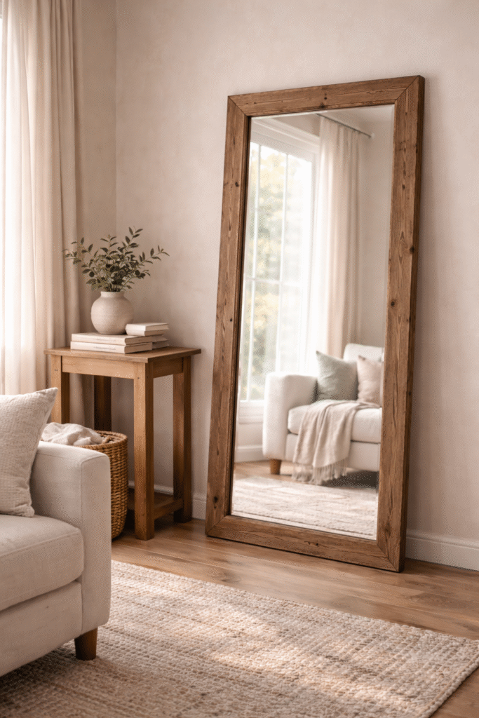 Lean it casually against a wall or hang it above a console table for aesthetic living space ideas.