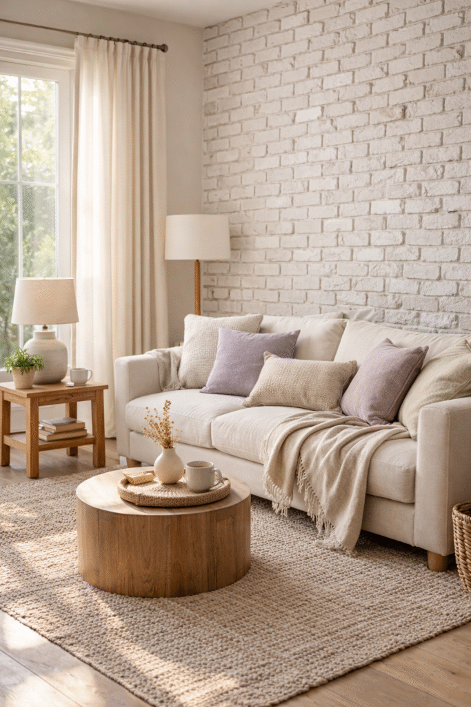 Natural stone or whitewashed brick adds texture and history to a space. It creates a focal point without relying on bold color.